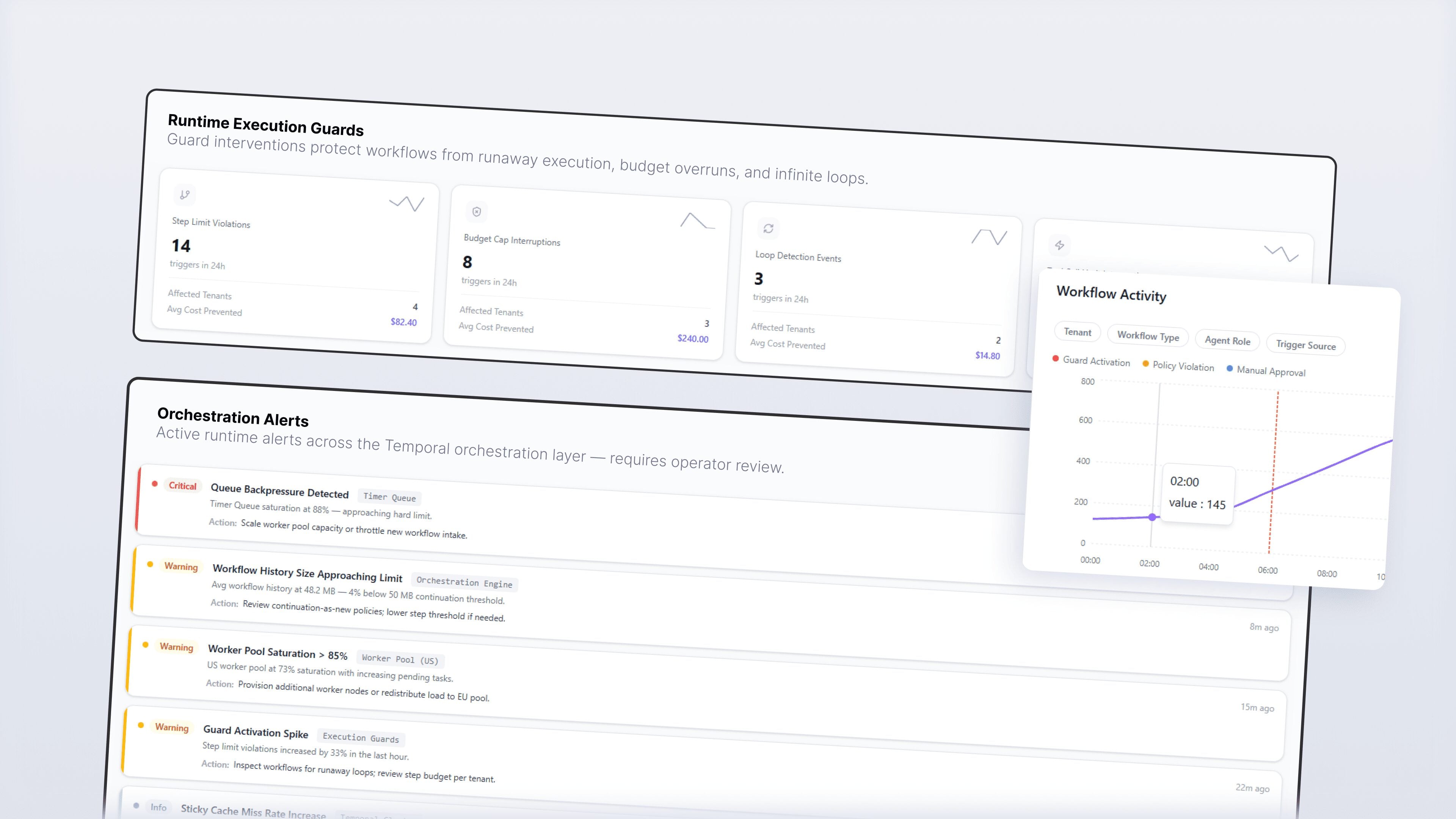 Spiral Scout specified execution guards that shut down or checkpoint agent workflows when step/quota budgets are exceeded – rather than relying on the LLM to follow prompt-level caps. Continuation-as-new patterns were implemented to chunk long-running sessions into bounded workflow segments. We also delivered cost and latency telemetry dashboards to monitor saturation, errors, and drift.