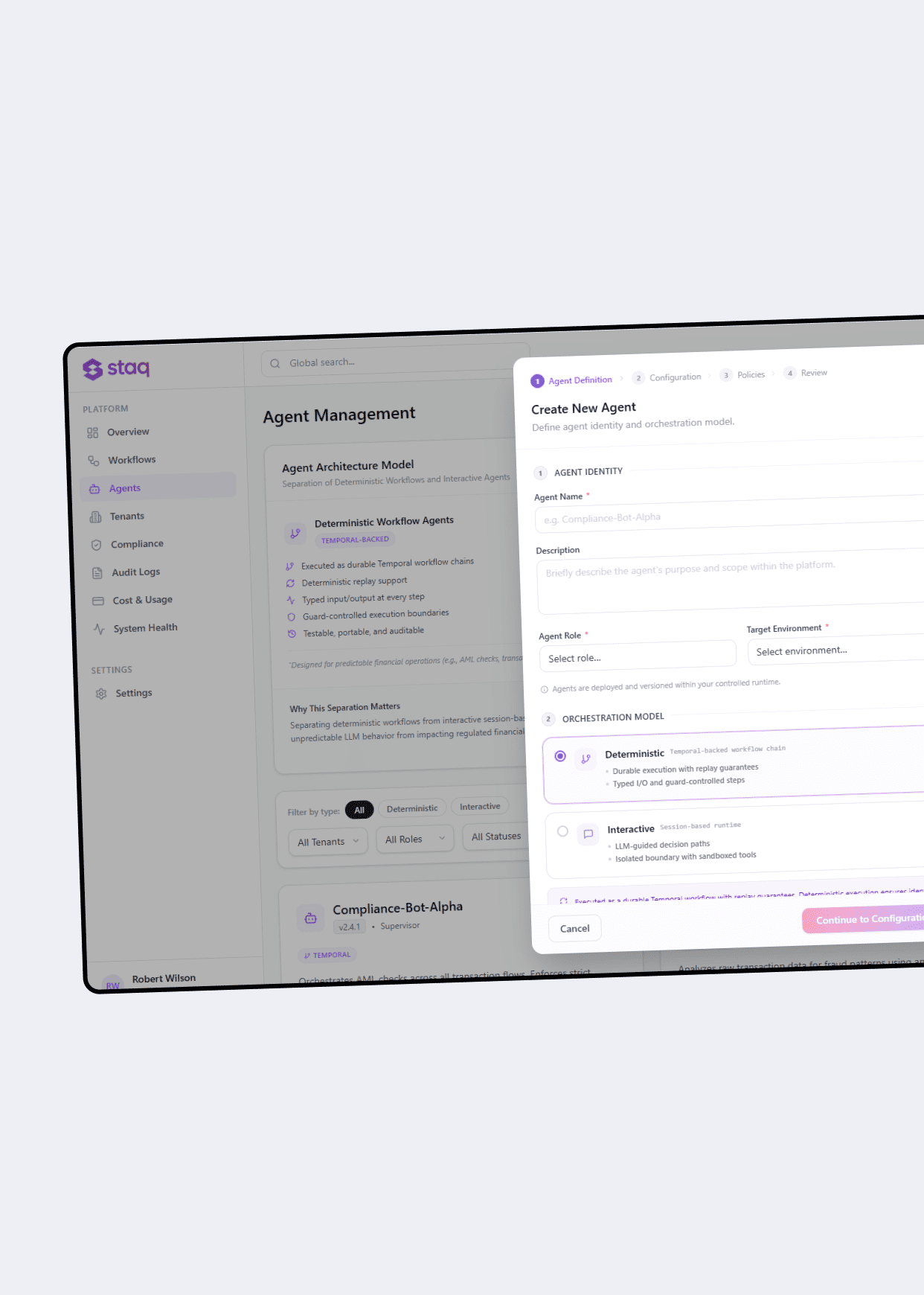 - Independent Handoff: Transfer architectural knowledge so Staq’s engineering team can compose new agents independently.
